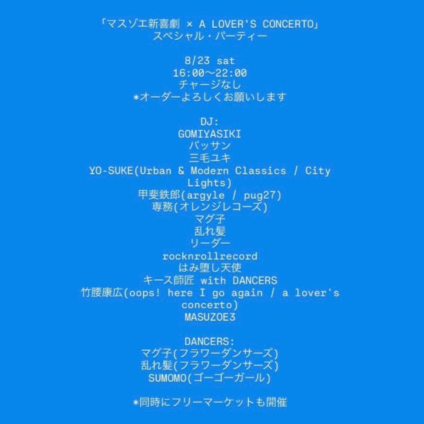 「マスゾエ新喜劇 × A LOVER’S CONCERTO」 スペシャル・パーティー