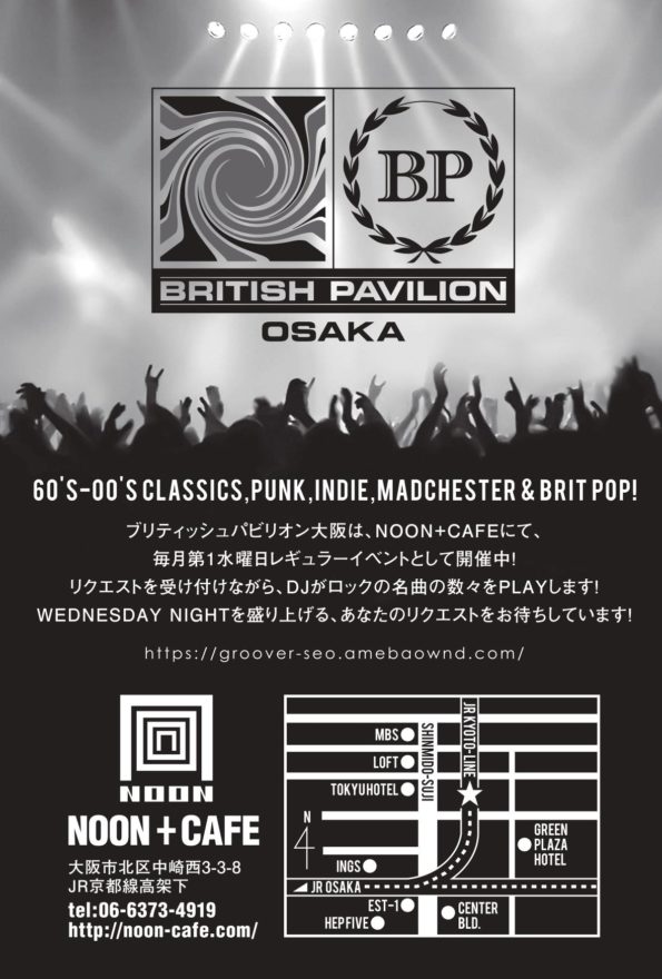ブリティッシュパビリオン大阪は、梅田NOON+CAFEにて、毎月第1水曜日に開催中!
