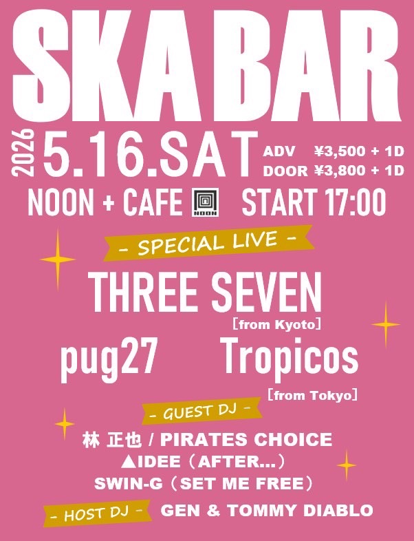 ※件名に、「5/16(土)SKA BAR前売予約」とご記入の上、お名前/ご希望枚数をご連絡下さい。