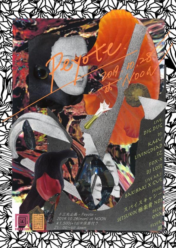 十三光企画 "peyote" 2019/10/28 (mon) @ NOON ¥1,500(+1d) ※仮面付き 21:00-till dawn ■live: dig.dug. ■dj: ka4u living dead…