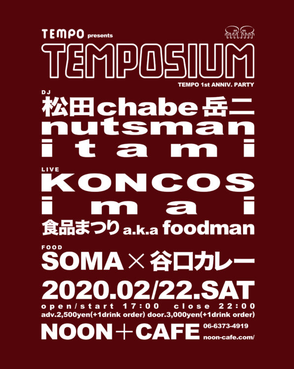TEMPO presents 🗣TEMPOSIUM TEMPO 1st ANNIV. PARTY 2020.02/22.SAT open/start 17:00 close 22:00 adv.2,500…