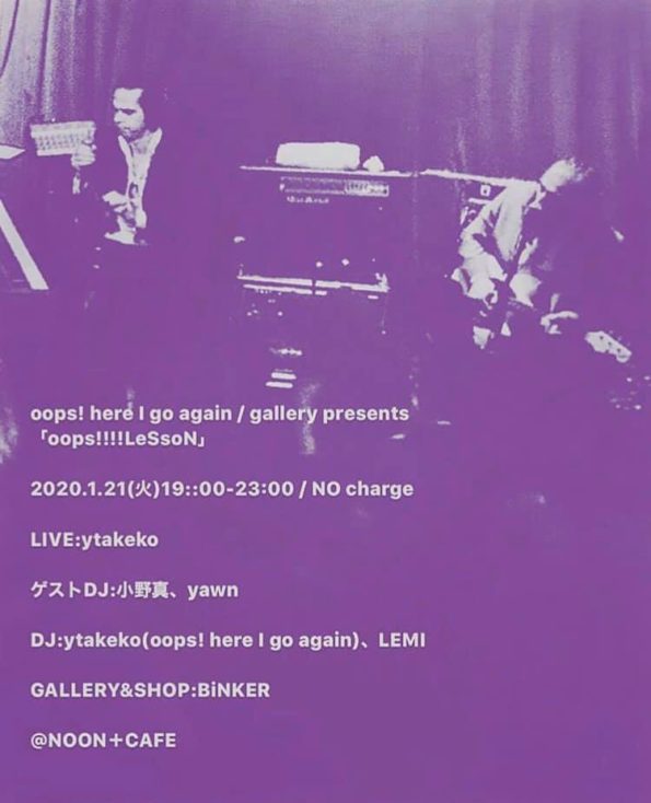 oops! here I go again / gallery presents 「oops!!!!LeSsoN」 2020.1.21(火) 19:00-23:00 / NO charge ■LIVE:ytakeko ■…