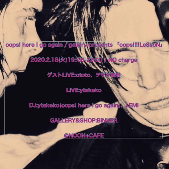 oops! here I go again / gallery presents 「oops!!!!LeSsoN」 2020.2.18(火) 19:00-23:00 NO charge ■ゲストLIVE: ototo、ヲ…