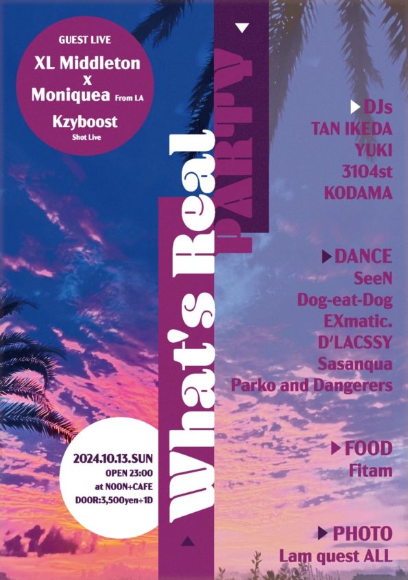 What's Real -PARTY- 2024.10.13 (SUN) 23:00 OPEN at NOON+CAFE DOOR:3,500yen+1D >>GUEST LIVE XL Middleton …