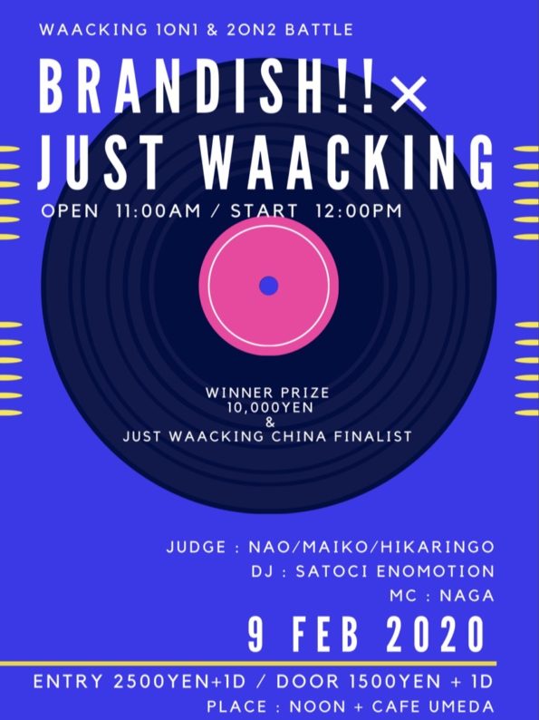 Brandish!!×Just Waacking 2020/2/9 (sun)@NOON+cafe UMEDA Open 11:00 Start 12:00 Entry 2500yen + 1Drink Door 150…
