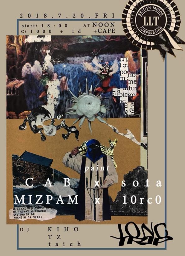 “LONG TRIP” 2018.7/20 START 18:00 C/ 1000+1DRINK AT NOON+CAFE ■LIVE PAINT/ CAB x sota MIZPAM x 10rc0 ■DJ/ KIHO…