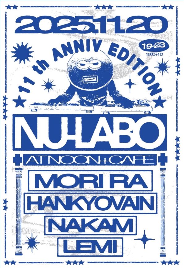 2025.11.20 (THU) NU-LABO 11th ANNIV EDITION OPEN 19:00 ENT 1000+1D DJ: MORI RA HANKYOVAIN NAKAM LEMI