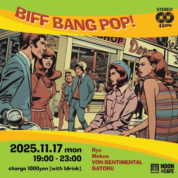 BIFF BANG POP! 2025/11/17(月) 大阪梅田NOON+CAFE 19:00〜23:00 charge 1000yen(with 1drink) 【DJ】 Ryu Mokuo Von Sentimen…