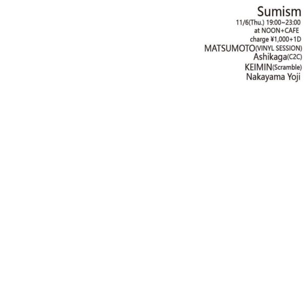 Sumism at NOON+CAFE 2025.11.6(Thu) OPEN 19:00 CLOSE 23:00 CHARGE ¥1,000+1D DJ MATSUMOTO(VINYL SESSION) Ashikag…