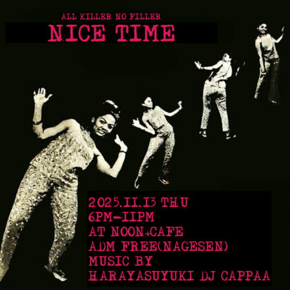 NICE TIME 2025.11.13 THU 6PM-11PM AT NOON+CAFE ADM FREE(NAGESEN) MUSIC BY HARAYASUYUKI DJ CAPPAA