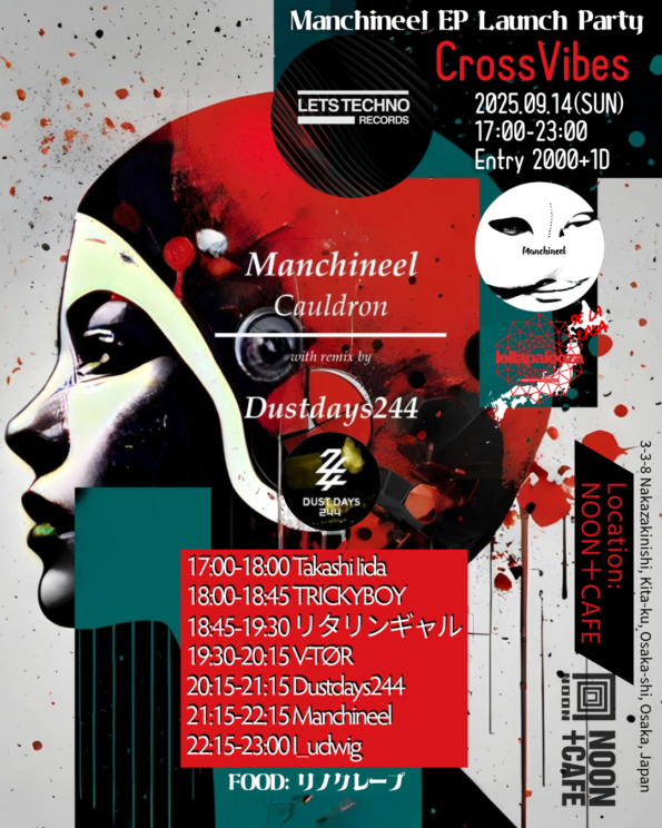Manchineel EP リリースパーティ – “Cross Vibes” 2025年9月14日(日) 17:00–23:00 エントリー:2,000円+1ドリンク 2025年9月19日、Manchineelはイタリア…