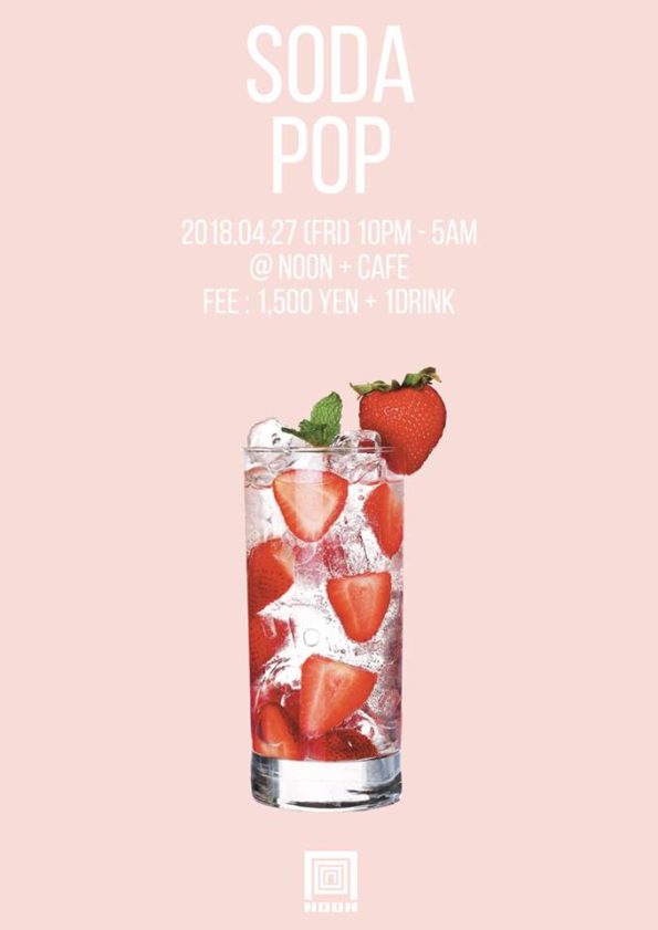 SODA POP 2018.4.27 (Fri.) 22:00〜5:00 @ NOON + CAFE FEE : 1,500 YEN + 1DRINK ■GUEST DJ TOGACEE (DJ 4OUR) ■DJs (…