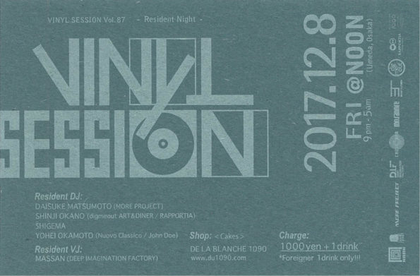 "VINYL SESSION" Vol. 87 - Resident Night - 2017.12.8 FRI @NOON (Umeda, Osaka) 9 pm - 5 am *9 pm - 11 pm: loung…