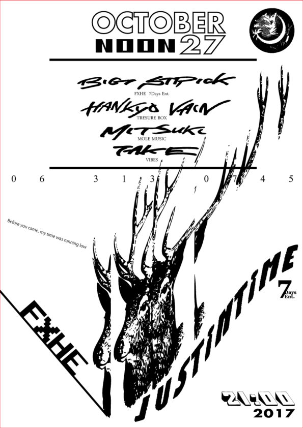 "JUST IN TIME" 2017.10.27.(FRI) OPEN/21:00-MORNING CHARGE/1900yen.(+1drink) ■DJs: BIG STRICK(FXHE Records)from…