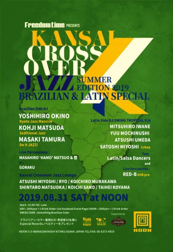 ★2019.08.31 (SAT) at NOON Freedom Time presents KANSAI CROSSOVER JAZZ:SUMMER EDITION 2019 -BRAZILIAN & LAT…