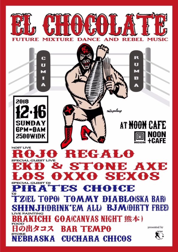 EL CHOCOLATE 2018/12/16(日) @NOON CAFE 6PM-0AM ¥2500 WITH 1DRINK ■HOST LIVE: ROJO REGALO ■SPECIAL GUEST LIVE: E…