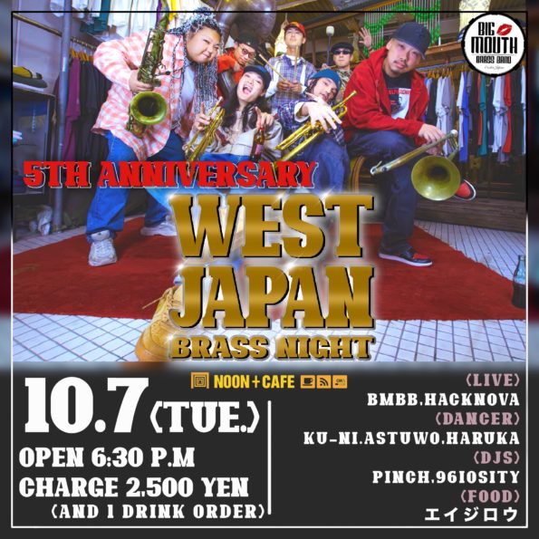 Big Mouth Brass Band 毎偶数月第一火曜日定期の主催イベント"W.J.B.N" 遂に5th Anniversary!!! Brass Band×DJ×DancerによるNight-Time Partyで…