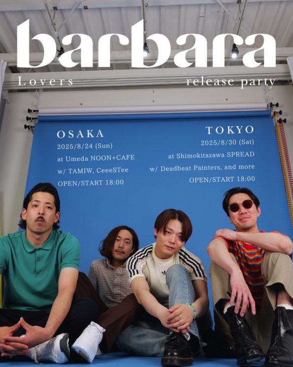 Barbara "Lovers" Release Party 2025年8月24日(日) 会場:大阪・梅田NOON+CAFE LIVE:Barbara / TAMIW / CeeeSTee OPEN / START:18…