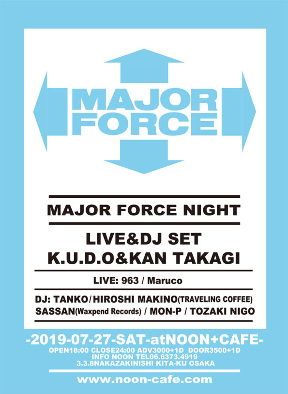 MAJOR FORCE NIGHT 2019.07.27(土曜日) OPEN 18:00 CLOSE 24:00 前売 3,000yen 別途1 drink / 当日 3,500yen 別途1 drink 前売:イープラ…