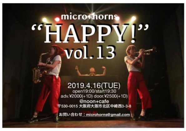 『micro+horns LIVE "HAPPY!"vol.13』 マイクロホーンズがハッピーとカンパイをお届けするLIVE、"HAPPY!"🎺🎷🎤 平成最後のマイクロホー…