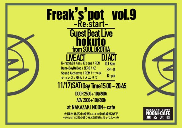 Freak's'pot vol.9 2018.11.17(sat) 15:00-20:45 Door/2500+1D(600) ADV/ 2000+1D(600) ※演者の名前をキャッシャーで言っていただくと前売り値段。…