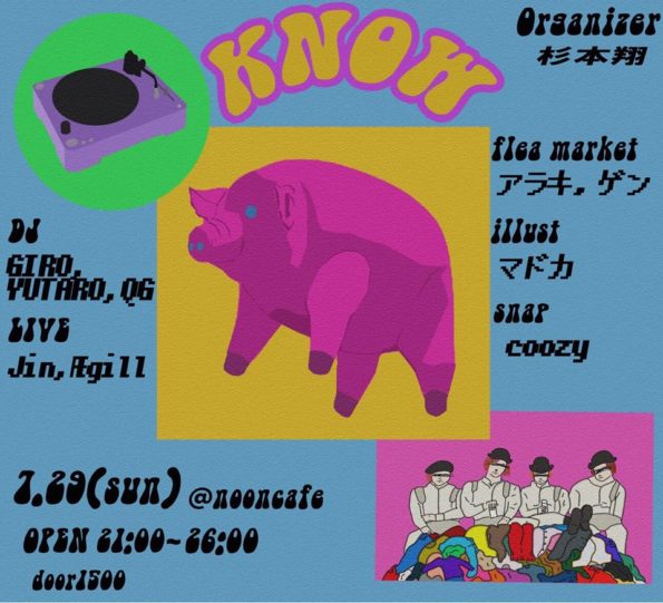 "KNOW" 2018.7.29.SUN OPEN 21:00 / CLOSE 2:00 DOOR:¥1500- ■DJ: GIRO YUTARO QG ■LIVE: JIN and more.. ■FLEA MARKE…
