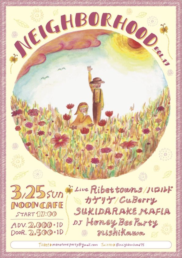 NEIGHBORHOOD 3/25(日) start 17:00 adv 2000+1D door 2500 ■Live: Ribet towns ハロルド カヴリヴ CuBerry SUKIDARAKE MAFIA ■…