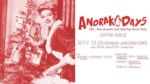 Anorak Days- Extra Issue @NOON 2017.12.25 (MONDAY) Start: 18:00 - 23:00 Charge: Free ■DJs; Anorak Days YOSHIDA…