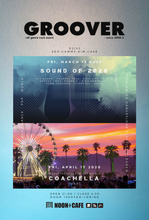 GROOVER 2020.3.13 FRI Open 21:00 / Close 4:30 Door 1500yen + 1drink ■DJs: SEO, GAMMY, KiM, Case "SOUND OF 2020…