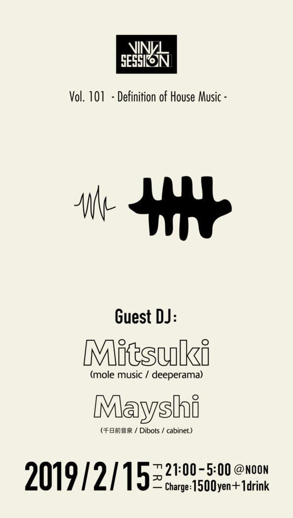 "VINYL SESSION" Vol. 101 - Definition Of House Music - 2019.2.15 FRI at NOON 21:00 - 5:00 Charge: 1500yen + 1d…
