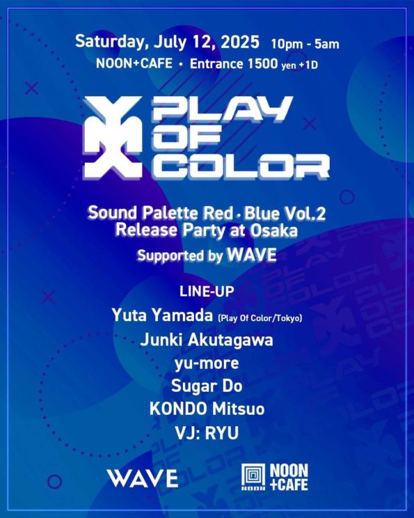 2025/07/12(SAT) PLAY OF COLOR Sound Palette Red • Blue Vol.2 Release Party at Osaka Supported by WAVE 📍…