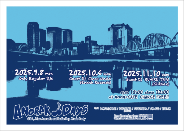 Anorak Days 2025.9.8(MON) 18:00-22:00 (JST) Charge Free DJs : HORIGOME / NISHINO(O-Level) / YOSHIDA / YO-KO / …