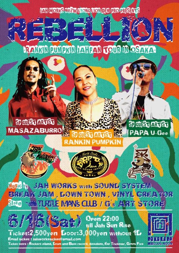 REBELLION -RANKIN PUMPKIN JAHPAN TOUR IN OSAKA- 2018.6.16.sat open/22:00-till Jah Sun Rise ticket 2500yen / do…